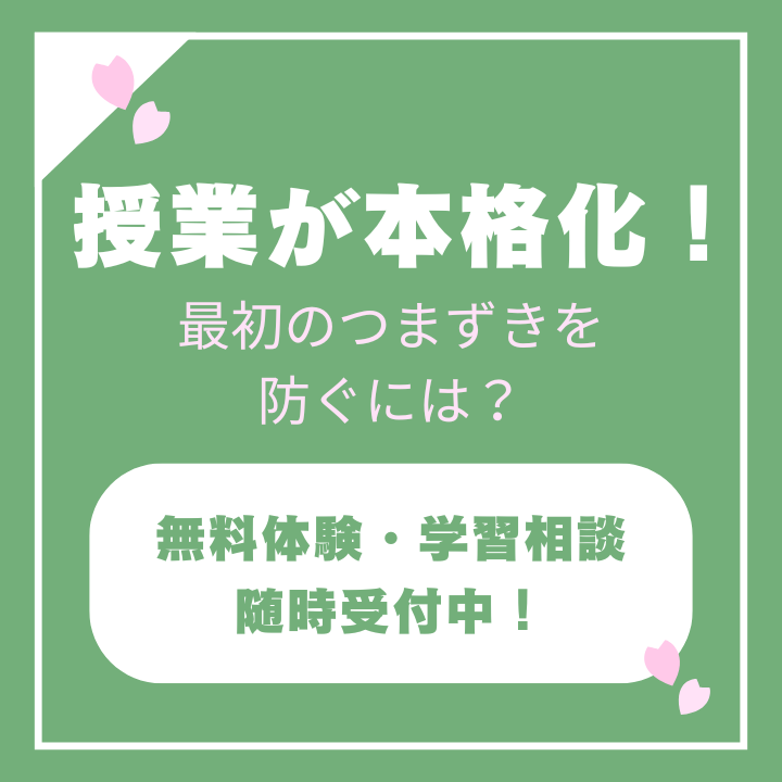 ここで一度「分からない」を放置してしまうと、5月の連休明けにはさらに内容が難化し、挽回するのに2倍、3倍のエネルギーが必要になってしまいます。
